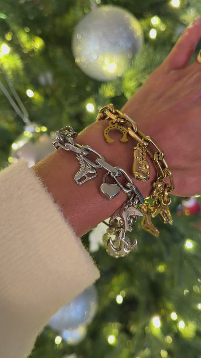 The bracelet is made of 925 sterling silver, plated with 18k gold, and has a water-resistant finish that allows it to withstand everyday use without losing its shine. Each little charm is a tribute to the generations before us, and a symbol of everything we carry forward.